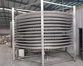 設備只有一個轉鼓,輸送帶在轉鼓上做螺旋上升或者螺旋下降運動。